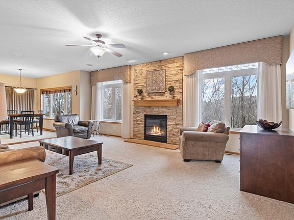 bedrooms plus another full bath and bedroom on the upper level. The expansive walk-out lower level family and amusement room includes a corner gas fireplace and a wet bar. Another bedroom and 3/4 bathroom PLUS two large storage areas complete the lower level. The lower level patio incorporates both an open and covered area. Enjoy the newly-updated maintenance free deck and paver patio with a built-in rock water feature. This home is simply GORGEOUS.