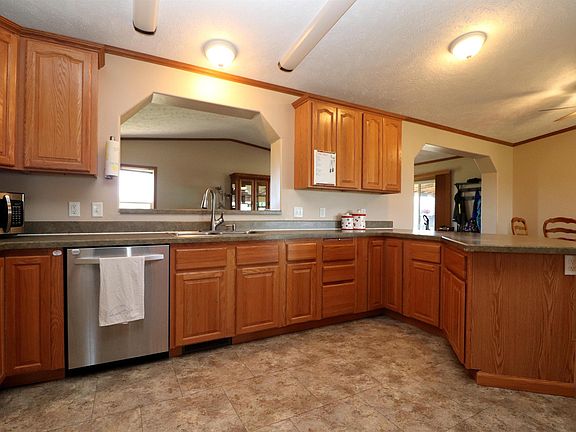 Listed by Suzanne White, 605-390-0137, Keller Williams Realty. Welcome to your new home just south of Belle Fourche. This one-level home offers plenty of storage, great updates, and 2 acres to spread out on! The kitchen has ample cabinets and a breakfast bar. The dining room fits a large table, or you can utilize the family room just off the kitchen with a fireplace for a more formal feel. Vaulted ceiling in the living room. The master bedroom is a dream with walk-in closet, attached bath featuring soaking tub, shower, and skylight, as well as an attached sitting area with built-in desk and deck access. The yard includes apple, cherry, and plum trees, a sandbox, large raised garden, and two storage sheds. The 3-car garage is insulated, heated, and has custom storage shelves. Updates include hail resistant shingles on all buildings, mostly new windows, furnace and A/C all in the last year! Fresh paint and updated flooring throughout. Buyer & buyer agent to verify all MLS information.