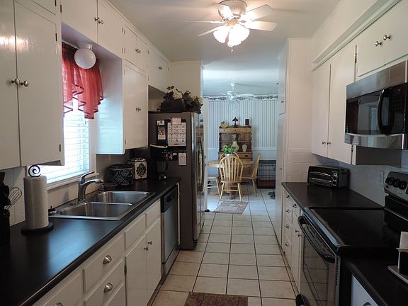 Move-in ready 2/1-0/2 in Brook Village. Living room has built-ins & fireplace. Dining room has hardwood flooring & swing door to kitchen. Kitchen has free-standing electric range/oven, refrigerator, dishwasher, & built-in microwave, great cabinet storage, & laundry closet. Breakfast area has built-ins. Bedroom 1 has large walk-in closet. Hall Bath has shower/tub combination, dressing table, & cabinet storage. Bedroom 2 has walk-in closet. Privacy fenced backyard has detached garage + storage building.