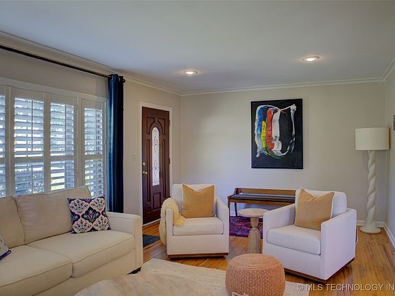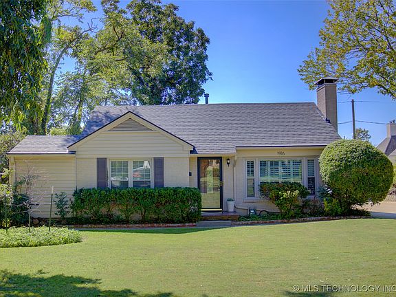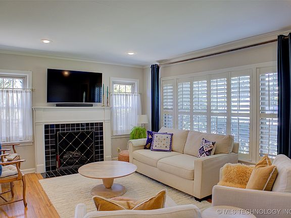 Pristine Brookside bungalow, Roof 6/25, both baths have been remodeled, replaced double pane windows, hardwood floors, remodeled kitchen with stainless steel appliances and a gas range, 3 door fridge, washer and dryer remain, opens to a cozy vaulted den, living area with a wood burning fireplace, formal dining, a walk-in closet in the primary bedroom, a beautifully landscaped yard, a storage building, a comfy patio, Mint condition, Easy access to all shopping, restraunts, Gathering Place and Downtown Tulsa