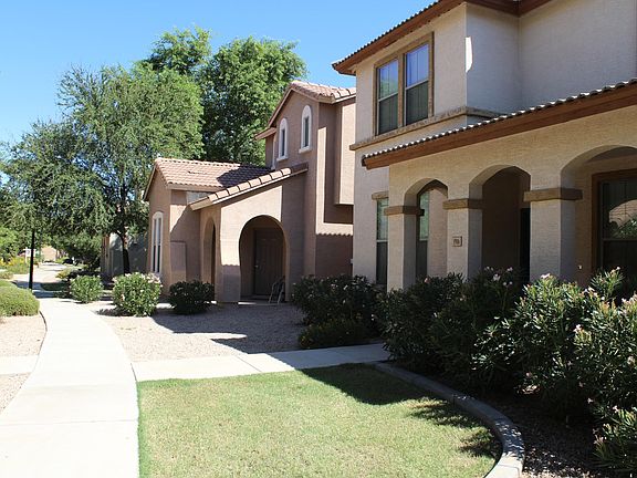 Newly renovated with freshly painted interior and new carpet! Wood-plank tile downstairs. New window blinds on most windows, ceiling fans in all bedrooms. Great open floor plan with 3 bedrooms upstairs plus extra den downstairs. Open kitchen with eat in area and exit to private patio. Refrigerator provided! Washer and dryer can be provided if needed. Master has double sinks and garden tub. Two car garage. Gated community with community pool in walking distance. HOA maintains grass front. Easy access to 202. Close to San Tan Mall restaurants and shops. Desirable Gilbert School District. no felony history, no eviction history, verifiable income above $6000/month per household. No cat, prefer no dog (one small dog downstairs only may be considered). $1975/month rent plus 1.5% rental tax, $500 cleaning deposit, $300 fee per pet.