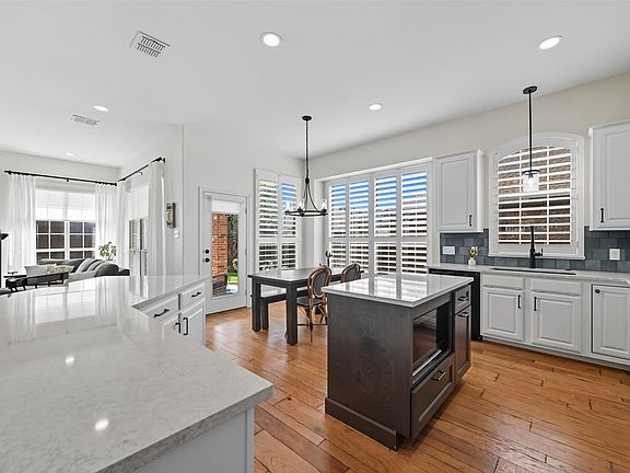 Modern Elegance Meets Everyday Comfort! This beautifully renovated 4-bedroom, 2-bath home offers 2 spacious living areas, a private office, and a 2-car garage — all designed for modern living and effortless entertaining. Step inside to discover extensive updates that leave nothing to be desired. The home features new wood flooring, fresh interior paint, and custom plantation shutters in the kitchen and dining nook. The gourmet kitchen is a chef’s paradise, boasting new quartz countertops, tile backsplash, a new center island with microwave opening and pull out trashcan, a new Samsung induction range and vent hood, and stylish new lighting, hardware, and plumbing fixtures. The upgrades continue with two new dual-zone Trane XR15 HVAC units, new carpeting in the bedrooms, durable workout flooring in one bedroom currently used as a gym, and elegant new tile surrounds for both the living room fireplace and the primary bath’s garden tub. The open, split-bedroom layout is perfect for privacy and gatherings. The kitchen, featuring a large breakfast bar and abundant cabinet space, overlooks the main living area, while the adjacent breakfast-dining area provides a comfortable setting for everyday meals. The second living area offers flexibility and can easily serve as a formal dining room, playroom, or media space. The primary suite is a true retreat, offering a spa-like bathroom with a corner garden tub, separate shower, dual vanities, and spacious walk-in closet. The exterior is equally inviting, with recently re-done professionally landscaped front and backyards providing excellent curb appeal. Enjoy peaceful mornings or relaxing evenings on the covered patio overlooking lush greenery. Ideally located near walking trails, parks, top-rated schools, and shopping, this home truly offers the best of comfort, style, and convenience.