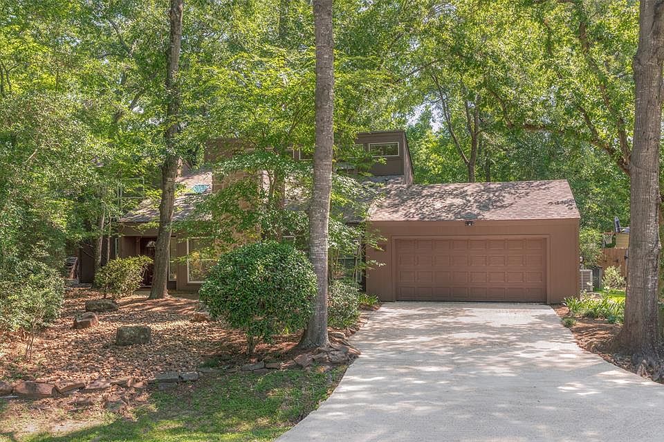 Fantastic home nestled amongst the woods upfront in The Woodlands. Light & bright home with high ceilings & lots of windows. Located in the Village of Grogan's Mill with easy access to I-45, Town Center & The Waterway. These particular sellers have put lots of updates into this home including double pane windows, hardiplank siding, stone fireplace, roof replaced, wood deck, laminate & slate flooring & much more. Plenty of privacy in this low maintenance oversized lot backing to greenbelt and located on cul-de-sac street. This one will be easy to call home! LOW TAX RATE & NO FLOODING!