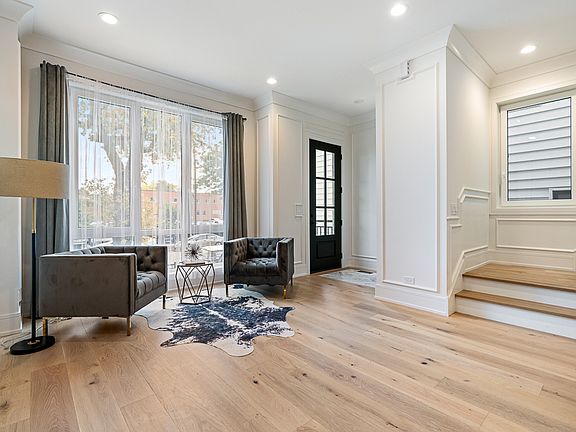 Stunning new construction single-family home in prime Bucktown location by a highly experienced builder. With 6 bedrooms and 4.2 baths, this residence combines suburban-scale living spaces with designer-curated materials and bespoke finishes to set a new standard for luxury. The main level is anchored by a chef's kitchen with Taj Mahal quartzite countertops and backsplash, a custom vent hood wrap, premium appliances, and two pantries, opening to a spacious living area with vented gas fireplace, custom built-ins, and detailed millwork. Large European windows throughout fill the home with natural light, tilt open for fresh air, and enhance the sense of quiet comfort inside. Upstairs, skylights flood the top floor with natural light and blue-sky views. The primary suite offers a generous layout with walk-in closet and a spa-like bath featuring dual vanities, a large steam shower, freestanding soaking tub, heated floors, and designer fixtures. Three additional bedrooms complete this level, including one with a connecting bath and another with an en-suite and walk-in closet, plus a conveniently located laundry room. The lower level is a true living space with 10-foot ceilings, radiant heated floors, jewel-toned designer tilework, a large recreation room with wet bar, a glass-enclosed office or bedroom, a private guest suite with en-suite bath and dual closets, and a second laundry center. Outdoor living includes a gated front yard, a private terrace at the back of the home, an oversized 2.5-car garage, and an expansive rooftop deck finished with tile, extending the living space for entertaining. Newly completed, this home is move-in ready.