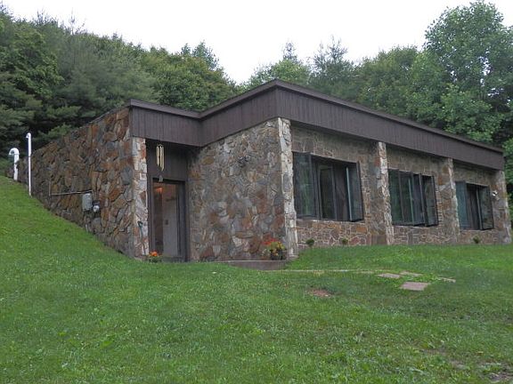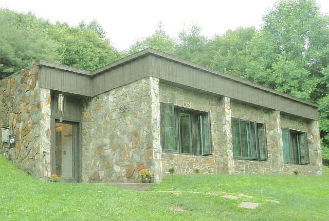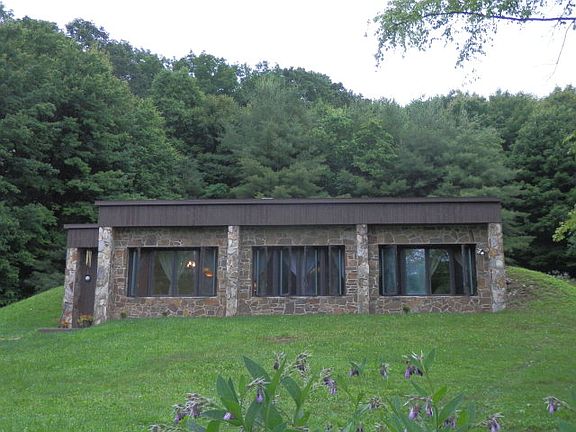 This EARTH-SHELTEREDhome is south facing with abundant windows for natural lighting, stone faced for passive solar gain, extremely well insulated for maximum energy efficiency. It has brick arches with fireplace with heat-o-lator system for passive heat and also a wood stove both can be used as the main source of heat. This extraordinary home was designed by well known architect Angus W. McDonald of Yale University. It offers comfort as well as high efficiency living. Beautiful wood floors and great open floor plan. The 12.2 acres are mostly wooded with some open area for gardens.