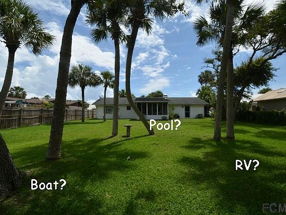 You will think you have rose-colored glasses as you sit in your . . 180 s.f. covered and screened back porch enjoying your . . enormous, beautiful, and shaded back yard with . . deer and . . hummingbirds and . . flowering shrubs . . this is one of the truly beautiful lots Flagler Beach has to offer . . a huge, swimming-pool-sized lot . . a great place to BBQ . . play volleyball . . An excellently maintained and . . solid older home . . real wood Firepace used until 5 years ago . . 528 s.f., attached, 2-car garage offers . . the possibility to expand the living square footage . . Add another garage at the rear . . . because this beauty sits on a . . double access, palm tree studded lot which also . . . makes parking your . . boat or RV an added pleasure . . Not many Flagler Beach homes can boast a huge, double access lot . . Most furnishings are available making your . . move easier . . to 1916 S Daytona Ave . . Be prepared to show to show mortgage APPROVAL or Proof of FUNDS.