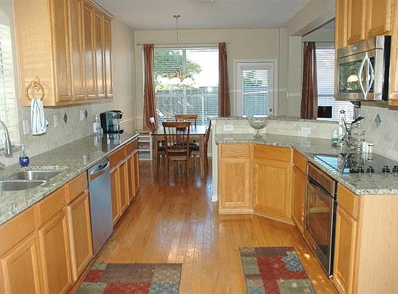 Don't miss this wonderful Flower Mound 1 story! Upgraded kitchen boasts granite countertops, tumbled stone bksplsh, stainless steel appliances, 42 inch cabs, undermount sink & tons of counter & storage space! Wood flrs accent entry, kitchen & breakfast rm. Brick fireplace w gas logs & crown molding are perfect additions to open living rm. Master suite has 2 sinks, sep shower, tile flrs & walk-in closet. Relax on the open patio overlooking bkyd! 05/18/15