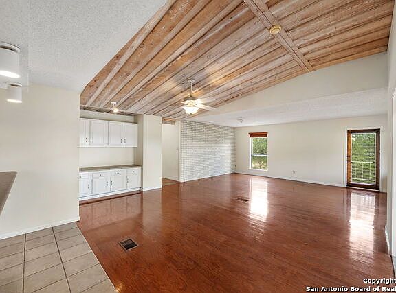 Nestled in the sought-after Triple Peak Estates community at Canyon Lake, this unique split-level home offers 1,668 square feet of versatile living space. Featuring two primary suites, one with a large garden tub, separate shower, and double vanities, comfort and flexibility are at the heart of this home's design. With four additional bonus rooms, there's space for a third bedroom, office, media room, or hobby space-whatever fits your lifestyle. Upstairs, enjoy an inviting kitchen and living area accented by a charming brick wall and wood-washed ceiling, creating a warm, rustic feel. Step outside to take in stunning partial lake views from three separate decks, perfect for entertaining or relaxing. Downstairs, the laundry room is conveniently located near the bedrooms for easy access. This property also includes a covered two-car carport and private HOA lake access, allowing you to walk down and enjoy the water at your leisure. Don't miss this rare opportunity for lake living with privacy and views!