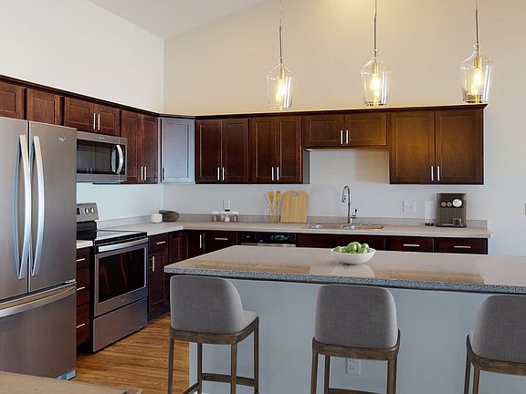 Duplex located in Mt Horeb. Large floor plan and open concept layout with quartz breakfast bar and vaulted ceilings. 4 bedrooms total; 3 bedrooms on the main level and 1 bedroom in the finished basement with bathroom; see floor plan details. Recreation room for movies/kids/entertainment. Energy-efficient appliances/AC/Furnace. 50ft from the public park with playground, basketball courts, skate park, outdoor exercise/yoga area, and sports fields. Walking trail to all park access from the backyard so no crossing the street! Great for kids or adult activities.4 miles (two hwy exits) Vortex: 11.6 miles New Duluth Trading HQ: 1.7 miles Downtown Verona: 9.6 miles Downtown Madison: 22 miles