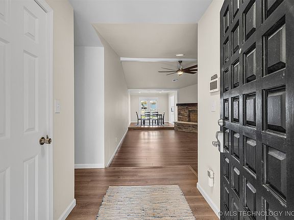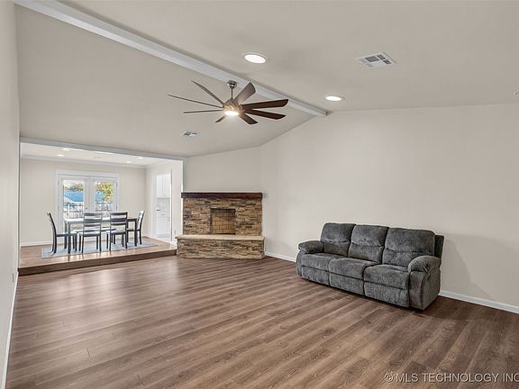 Beautifully Updated Home set on a peaceful cul-de-sac lot with mature trees, featuring a light-filled, generous floor plan. Upon entry, the spacious Family Room boasts vaulted ceilings, a cozy fireplace, and new LVP flooring throughout the main areas, complemented by fresh interior paint. The open layout flows seamlessly into the Dining Area and a remodeled Kitchen with quartz countertops, abundant cabinetry, a secondary Dining Area, plus an adjacent Utility Room. The Primary Suite includes a private en suite with dual vanities, a stylish shower/tub combo, plus a large walk-in closet. Three additional Bedrooms and a Full Bath complete the interior. Newer HVAC and water heater units provide peace of mind. Step outside to enjoy the covered Patio and expansive Deck, ideal for outdoor living and entertaining.