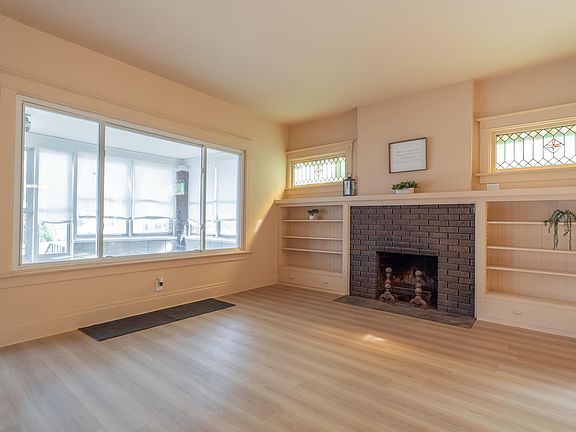 Brick mantle fireplaceEnclosed front porchFormal dining roomHigh ceilingsStained glass windowsUpdated kitchenTwo updated bathrooms