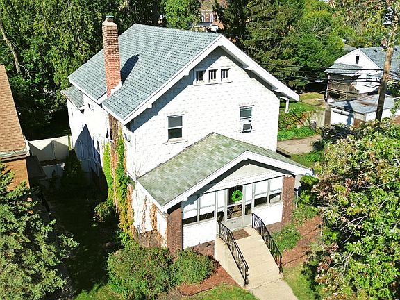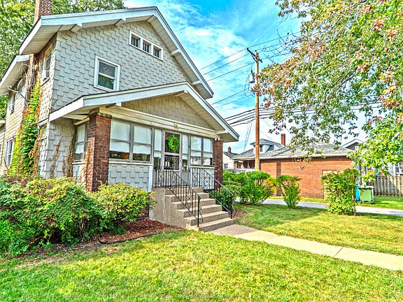 CORNER LOT HOUSE steps away from 119th Street. Wolf Lake and Whihala Beach are also a short bike ride away! Vintage charm abounds from the moment you walk into the ENCLOSED FRONT PORCH. The living room is centered around a BRICK MANTLE FIREPLACE flanked with bookshelves on the sides and STAINED GLASS WINDOWS above. Inside features HIGH CEILINGS, a formal dining room, TWO UPDATED BATHROOMS, and an updated kitchen! (Seller will provide a CREDIT FOR APPLIANCES!) Both floors of the house have NEW FLOORING. The main floor primary bedroom has its own full bath. The second floor provides 3 additional large bedrooms and a full bathroom. NEWER MECHANICALS - Water Heater (2015), Roof (2017), Boilers (2007, serviced yearly), some updated vinyl windows. Also, plenty of laundry, storage, and rec space in the FULL BASEMENT! The FENCED BACKYARD is great for entertaining and the corner lot position provides ample guest parking. There is also a separately fenced area on the side of the house for a DOG RUN, private hang out area, or protected garden area. ATTACHED GARAGE with direct access to both the main floor and basement. Conveniently located near parks, dining, shopping, and entertainment. Don't miss the vintage movie theater down lively, historic 119th St! Also a SHORT COMMUTE to Chicago and major expressways for work or play.