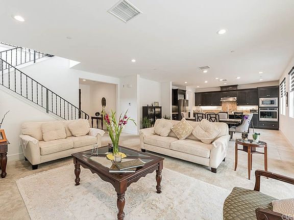 Welcome to this GORGEOUS home, located in the desirable area! This spacious home features an open floor plan with large rooms, high ceilings, a wrought-iron staircase, downstairs features a bedroom that is currently being used as an office & bathroom for guests. The chef's kitchen has granite counters, a large center island with a built-in eating area. The kitchen opens to a large family room w/fireplace & doors which lead to your large private entertainers backyard with fruit trees and water fountain. Upstairs is light, bright master suite with walk-in closet. The master bath features a large glass shower, double sinks with vanity. Three additional bedrooms upstairs and a 3rd bathroom. Two Car Garage has two 220 connection for your Electric Cars. No Mello Roos!