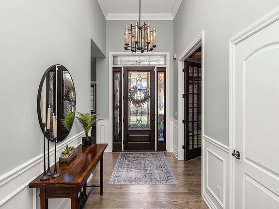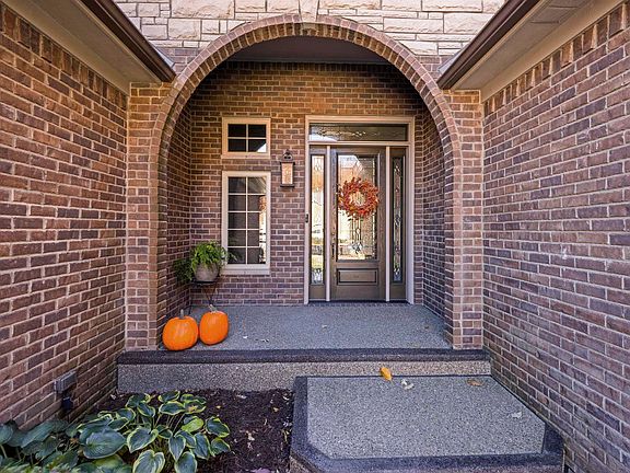 Tucked away at the end of a peaceful dead-end street, this oversized newer split ranch is a stunning showcase of craftsmanship and comfort. The full-brick exterior and impressive 8-foot leaded glass entry set the tone for the elegance inside. Step into the grand foyer where 14-foot soaring ceilings and open, light-filled spaces create a breathtaking first impression. The spacious great room is anchored by a striking stone fireplace flanked by sun-drenched windows and custom built-ins, flowing seamlessly into the gourmet kitchen—a chef’s dream featuring Thermador appliances, including a gas cooktop with direct vent, dual ovens, oversized refrigerator, and bar refrigerator in the island. The Lafata cabinetry, granite countertops, and designer backsplash add sophistication, while the generous dining area with a bay window leads to an expansive aggregate patio overlooking the fully fenced yard—perfect for entertaining. The private primary suite is a true retreat, complete with a walk-in closet and spa-inspired bath featuring a soaking tub, oversized shower, and private water closet. A study with French doors, two additional bedrooms, and a second full bath offer flexibility and space for family or guests. The extra-deep finished basement with an egress window is prepped for a full bath, ready to be customized to your needs. The heated 3-car garage with new commercial-grade flooring is an added luxury. With all appliances included, this home is move-in ready—just in time to decorate for the holidays and enjoy a life of refined comfort!