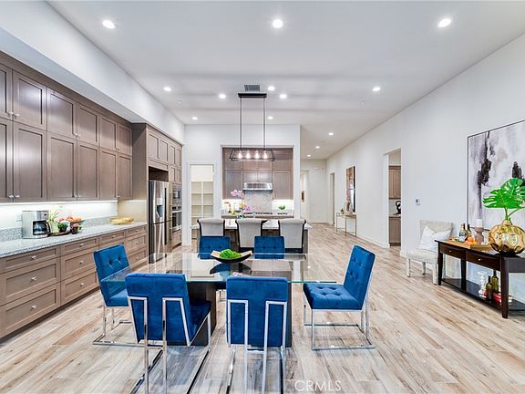 NEW CONSTRUCTION!!! NO MELLO ROOS, OWNED SOLAR. Come see this gorgeous spacious executive single-story home. High Ceilings- 12 foot plus, wood-like tile floors and shutters exudes grandness. The long hallway takes you to the great room with a chef’s kitchen, featuring stainless steel appliances, oversized island with breakfast bar, lots of counter space and additional upper cabinetry. The kitchen overlooks the dining area that is open to the family room with gorgeous fireplace and access to the backyard. The back yard features an indoor-outdoor entertaining space, built in BBQ and custom pavers The primary suite features a sitting area, master bath with dual sinks and dual separate walk-in closets. The fourth bedroom is currently being used as a flex room with office-movie room combo. There are two further bedrooms, a full guest bathroom, laundry and half bath. This home is minutes from the HOA pool, parks and basketball area, it has easy access to both the 14 and 5 freeways, shopping and restaurants, and access to award winning elementary, middle and high schools.