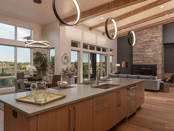 High desert landscape, Cascade Mountain views and the big Bend sky are just a few natural elements to be enjoyed from back of this new modern, single level home in Tartan Druim. Situated on close to a half acre, this 3,242 sf home features an open great room floor plan with vaulted ceilings, gourmet kitchen 4 en-suites with nice separation between the master and secondary bedrooms, and 3 car garage. Additional features include exposed beams, custom cabinetry, rich woods, solid surfaces, designer tile, high end appliances, built in fridge, A/C, and built in exterior hot tub. Set in Tetherow & bordering the Deschutes National Forest, Tartan Druim offers direct access to Phil's Trail & is conveniently located on Bend's West side. The neighborhood park, Tartan Place, features 3 acres of grass, bocce ball courts, firepit, and more.
