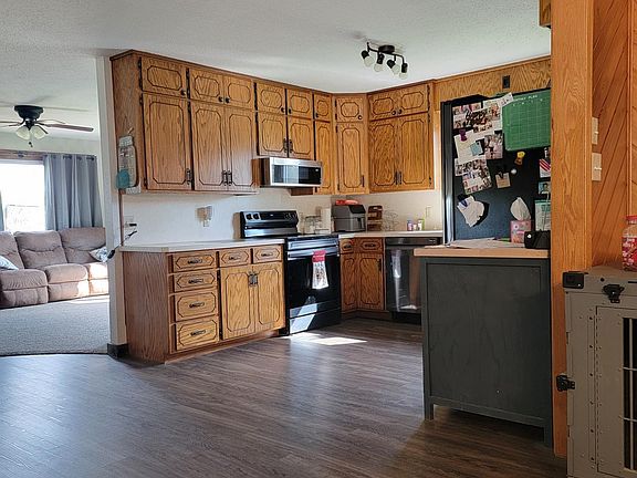 Flooring in the basement is still needed. The stainless steel appliances will stay. The land is mostly tillable with a mix of woods and pasture.