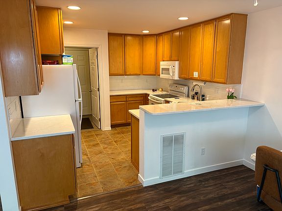 Beautifully updated 3-bedroom 2.5 bath end-unit townhome in Village Gate! Spacious and bright with , vaulted ceilings, and a fresh interior featuring new paint, luxury vinyl plank flooring, and new carpet. The modern kitchen boasts new quartz countertops and a stylish tile backsplash. The primary suite includes dual closets and a stunning en suite bath with a skylight. Additional highlights include an oversized 2-car garage with storage shelves, radiant heat, and convenient access to shopping, transit, entertainment, and freeways. Pets considered on a case by case basis with limit of 2 and under 35lbs. Available now! Contact for showing!!