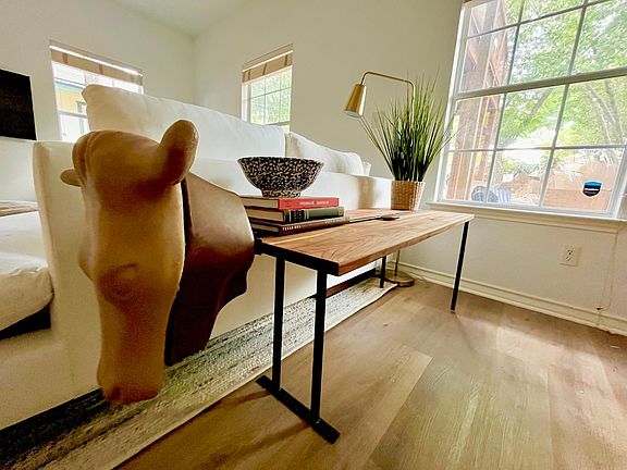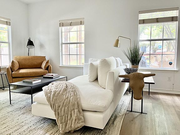 Beautiful, bright and furnished - 3bd, 2bth house in the heart of East Austin. Walk to everything including Salt and Time, Cuvee, Whislers, Lazarus and more! House has a dog run in the side yard, two car garage and front yard with an awesome deck you can see the Austin skyline from in winter. The house includes a primary bedroom, with a King bed and a full bath and walk in closet downstairs. Upstairs you'll find two bedrooms on each side of the house . One has a queen bed and walk in closet, the second with two twin beds and access to the upper deck. The house features all new flooring, brand new washer/dryer, beautiful countertops and everything you need to cook in your kitchen. It also features Google Fiber, a 55in Smart TV and extremely comfortable furniture that comes from West Elm, Poly & Bark, CB2, Lulu and Georgia and even some beautiful vintage furniture. Coming to Austin for a few months to escape winter? Move right in with everything you need to be right at home! Open to 1-2month lease, furry friends welcome and comfortable with our fully fenced property. All utilities are included. 1-2 Month Lease. Pets welcome.