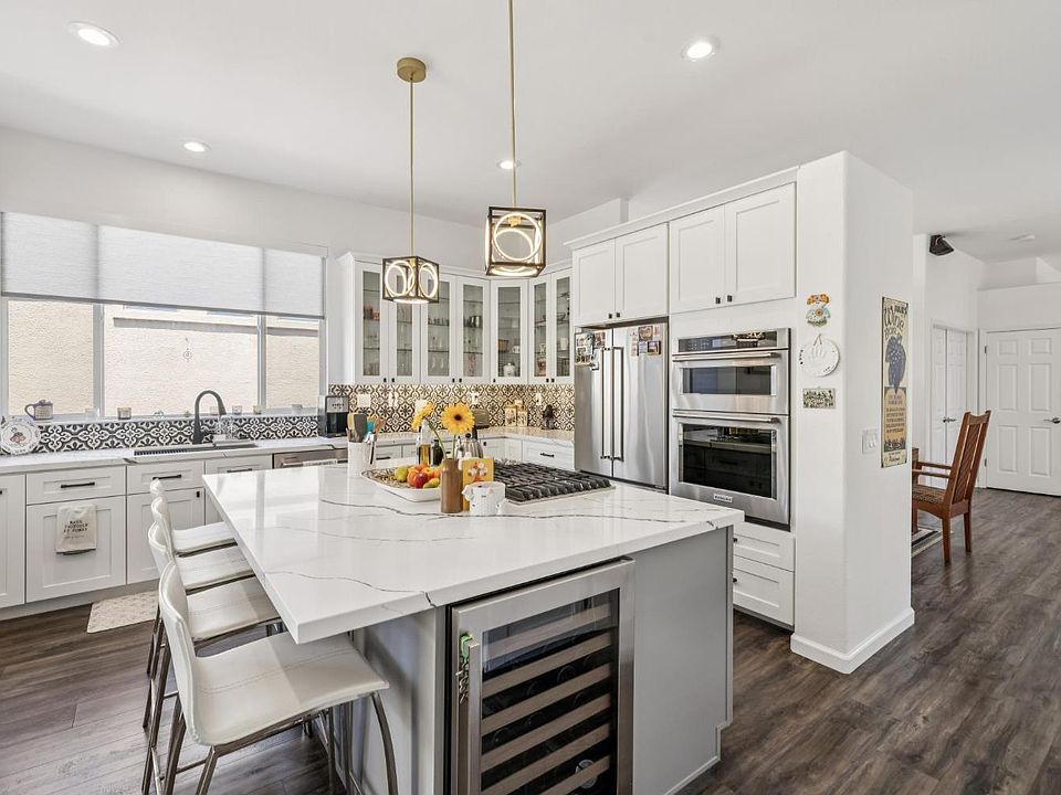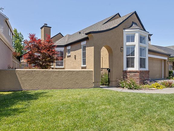 Discover modern elegance with this stylish single-level property located in the prestigious enclave of Adobe Creek. This lovely home boasts 3 bedrooms and 2 bathrooms within 1,930 sqft of airy living space. Built in 1998 and updated within the last two years, it features 12-foot ceilings, a bright kitchen with a center island, and luxury vinyl wide plank floors. Two fireplaces with updated mantles add warmth, while the comfortable backyard deck offers serenity and access to the residents-only greenbelt. Enjoy the convenience of an attached two-car garage, laundry, and modern amenities all within convenient distance to shopping, restaurants, gym, and commute routes.