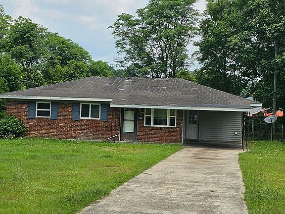 Brick ranch with single carport. Large front yard and fenced back yard. Home features formal living room, eat in kitchen, small den and laundry room. Central heat and air.