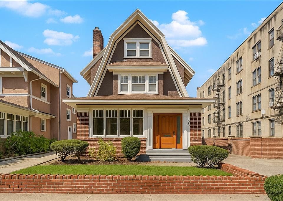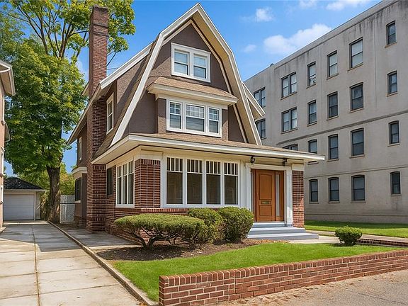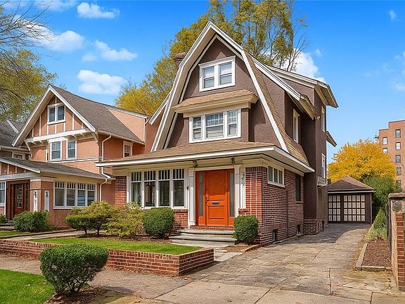 Welcome to 1917 Glenwood Road. Enter into a meticulously maintained, 1920 Dutch Colonial Revival with 8 Beds, 3 Baths and detached garage on a 40' x 160' lot sited on a beautiful tree-line block in Fiske Terrace-Midwood Park. Over 3,300 sq ft of flexible living space spread over 4 floors. Generously sized light filled rooms, original craftsman detailing, woodwork and marquetry inlayed floors throughout. First Floor. Enclosed and heated Sunroom (full house width) with panoramic windows. Central formal Living Room with fireplace. Adjacent, generous sitting area. Stair Hall with grand winding banister staircase. Gracious, oversized formal dining room. Enormous eat-in Kitchen with true professional set up including expansive countertop and prep space, central fridge, generous cabinets and pantry space. Second Floor. Three spacious light filled bedrooms. The oversized primary has large walk-in closet area. Oversized bathroom with separate deep shower, bathtub alcove with stained glass window and hip bath. Third Floor. Two king sized Bedroom with sitting area. Summer kitchen and bathroom. Basement. Fully renovated, insulated and climatized with windows throughout. The space has three additional rooms laundry area and a full bathroom with a separate entrance. Can be used as a home office, playroom, gym space etc. Location. a short distance from the Q and Express B trains at Newkirk Plaza (minutes to Manhattan). Convenient to retail and shops. Moments from Cortelyou Road’s vibrant restaurants & cafés. Historic Fisk Terrace, built between 1905 and 1914, is uniquely special in the city owing to its individual custom-built houses.