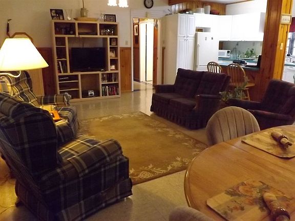 Not Fancy, Just Homey...Rural neighborhood with long term residents; great tree-lined, paved driveway leads to home. Take a look at this comfortable and cozy 2 B/R, 2 bath home situated on approximately 3 acres of beautifully landscaped land. This home is a split plan with the center being the Great Room area. (LR/DR/Kitchen) flanked on each side by a bedroom..office space adjacent to 2nd B/R. Large attic for storage. Well and new septic...Great pole barn...This is a well constructed home with double carport & double garage. Need larger home? Renovate garage into additional living space. Call today for Appointment...