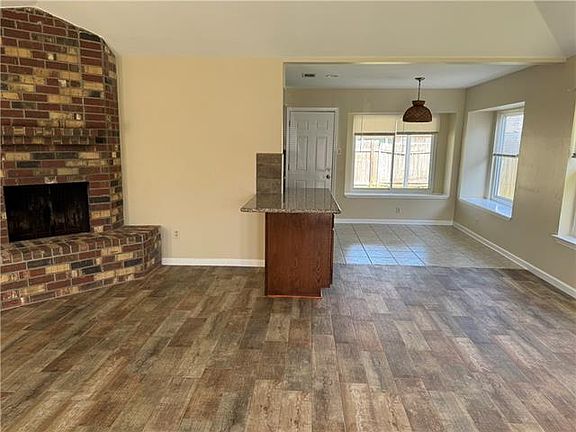 Wood-grained ceramic tile and a brick fireplace offer rustic appeal, with a touch of elegance, to this suburban backdrop. Both bathrooms are re-imagined with an artisan's touch and refinished with designer cabinetry. The kitchen is a sight to be seen! Move in and rest easy--all the hard work has already been done.