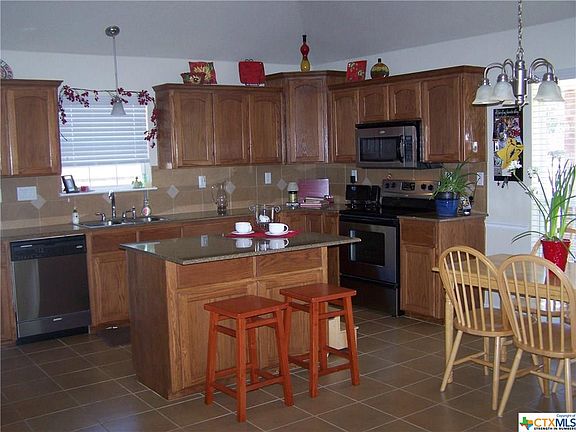 Make your appointment today to see this beautiful home located in the desirable Knights Ridge neighborhood. This home features 4 bedrooms, 2 baths and tons of character! A fabulous decorative tile entryway, large family room with a cozy wood burning fireplace, and a kitchen made for the best of chefs makes this home stand out. The kitchen has granite counter-tops, tons of cabinet space, stainless steel appliances and a large center island. The owners retreat provides the perfect getaway. Double sinks, his and her closets, and a Jacuzzi bathtub round out the master bath. Beautiful trees are found in the front and back yard and provide ample shade for those hot Texas summers! An in ground sprinkler system, new carpet throughout, privacy fenced yard, alarm system, and 2 inch blinds add the finishing touches to this home.
