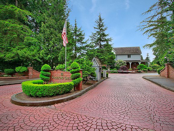 The perfect investment for your real estate portfolio! Over of the 31 English/Tudor styles in beautifully gate Stratford Greens. Lush, mature landscaping and soaring ceilings invite you into this impeccably maintained & managed upscale town home in desirable Mill Creek. Large windows and French doors w/patio overlooking the Golf Course. Curved staircase leads to 2 Master Suites. Minutes to Mill Creek TC & B/E Hwy. Attached 2 car garage. Convenient, tranquil, and serene. Low maintenance.