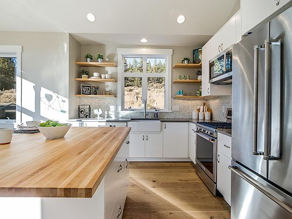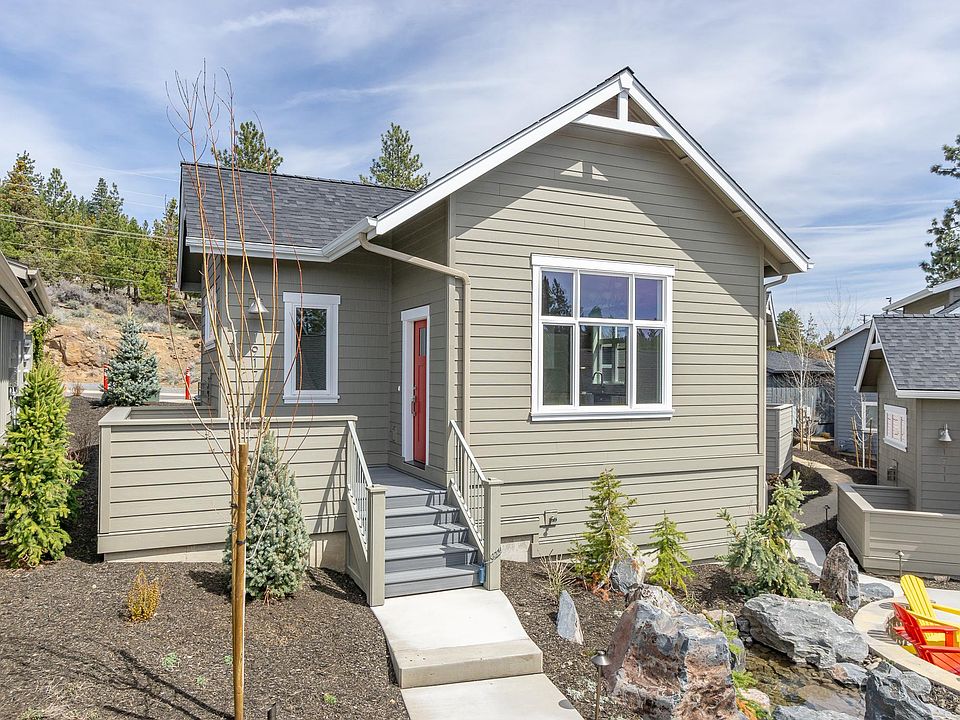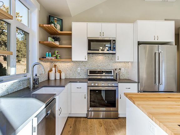 This stunning little condo is detached from any other units. Enjoy life on the West Side of Bend just a few blocks from the Broken Top Bottle Shop and the round about at Newport and College Way. Inside you will find high end, modern finishes including stainless steel appliances, hardwood floors, slab stone counter tops, tiled walk in shower and a gas fireplace in the living room. Bright, open floor plan includes an office nook. Heating and cooling provided by a ductless heat pump. There is a single car detached garage.