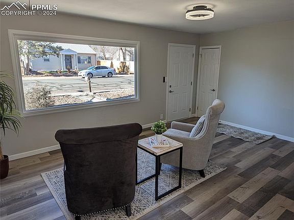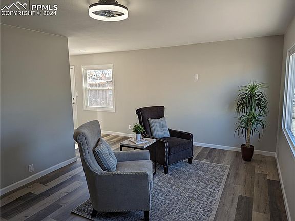 Completely remodeled and updated. Amazing custom work inside and out. Totally unique stonework outside. Brand new roof. Newly painted inside and out. All new appliances, custom tile designs in the kitchen as well as in the bathroom. New fixtures, lighting, and flooring throughout. A view of Pikes Peak from the front of the house. Large concrete driveway with a garage featuring a new electric garage door. Plenty of space in the back yard to make your own. Close to schools, shopping and I25. What more can you ask for?