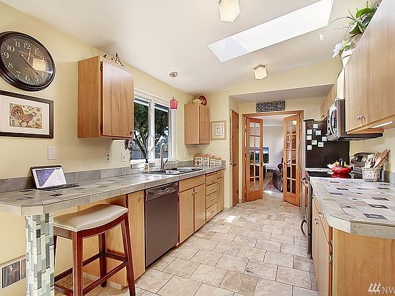 Welcome home! This beautifully updated, immaculately maintained 3 bdr /2 bath 1 story home located in a private, peaceful cul-de-sac. High ceiling, lots of light, amazingly cozy atmosphere. Updates: SS appliances; custom tile and glass kitchen counters,custom tile fireplace hearth; insulated windows & skylights; tile floors, french doors, add'l attic insulation. Lovely yard and garden. Large outside shed. Chicken coup/dog run. Extra parking spaces on a long driveway. Quick & easy access to I-5