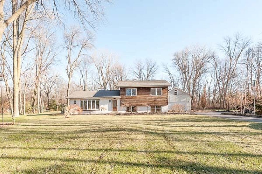 On 2.6 acres of open land, this 3 bedroom 1 1/2 bath split level is in need of updating or can be rebuilt in the same footprint. Being sold in as is condition, previous owners have invested in drainage improvements and have county approval for expansion! Property backs to Deerfield Golf Course, has a detached garage with room built overhead and great potential. See plans attached!