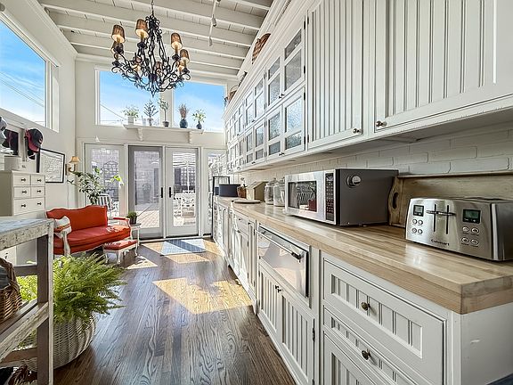 Cozy gas stove fireplaceGarage spotFloor-to-ceiling windowsCozy bedroomKing bedroomButcher-block islandSitting area