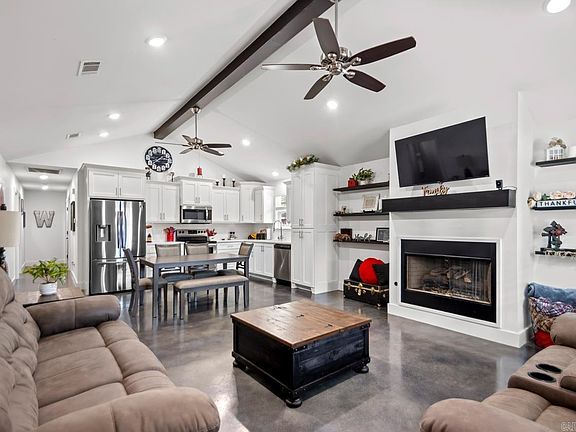Welcome to 1917 W Sevier St, nestled in the heart of Benton and within view of Caldwell Elementary. Built in 2021, this inviting home spans 1568 square feet and features an airy open floor plan. The living room, kitchen, and dining areas flow seamlessly, perfect for both relaxing days at home and entertaining gatherings. The spacious primary suite includes a large bedroom and a well-appointed bathroom with a soaker tub, walk-in shower, and dual vanities. The bathroom connects to a generous closet that leads into the laundry room. The two guest bedrooms are situated across the hall from a guest bathroom. Throughout the home, polished concrete floors add both style and ease of cleaning. The combination of modern colors, concrete floors, and the open floor plan offers a contemporary style you won’t find at this price point. Outside, the small backyard offers privacy, a convenient storage building, and a charming grassy area for outdoor enjoyment.