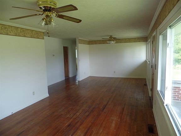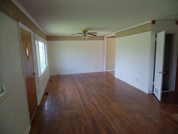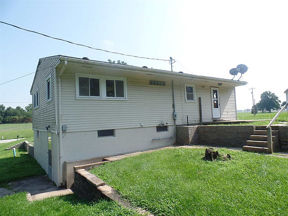 2 bedroom vinyl sided home hardwood floors in huge living room and bedrooms, full unfinished basement with laundry hook up & utility sink, detached carport & storage shed on .50 acre west of Bloomfield.