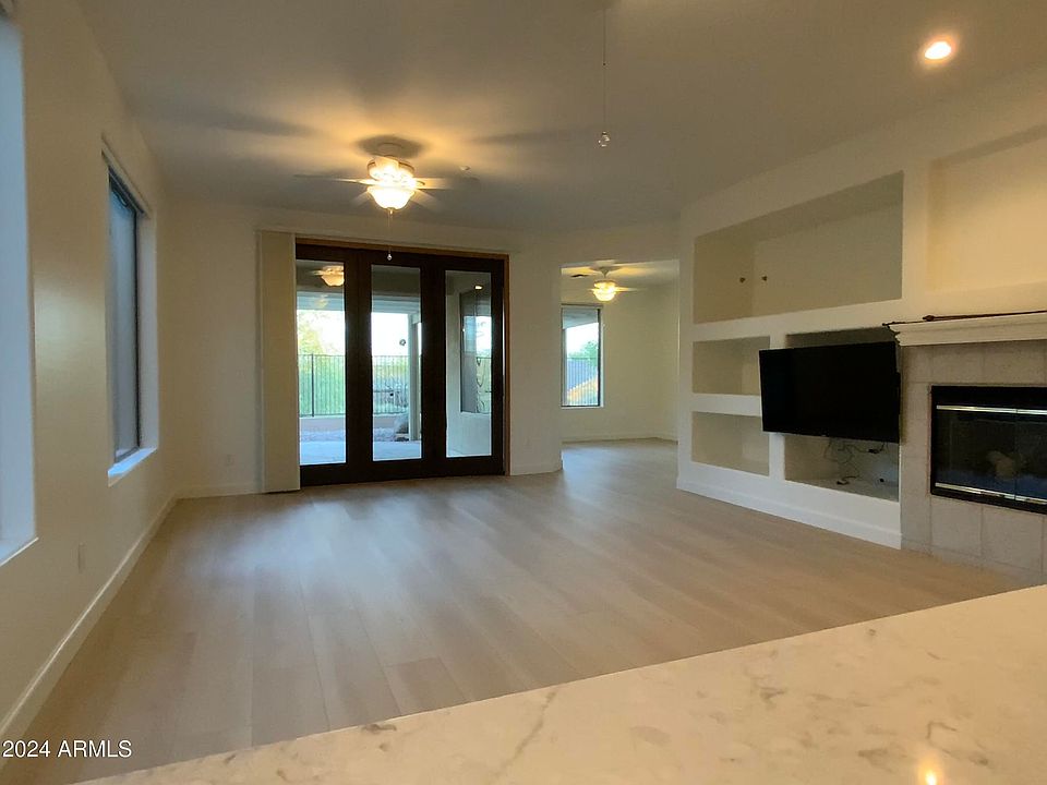 Back on market with BRAND NEW interior & exterior paint & ALL NEW flooring! Enjoy backing to open space with distant mountain views from this charming 2 bedroom, den, 2 bath main house with 1 bedroom/1 bath detached guest house! Remodeled kitchen with quartz counters, gray subway tile backsplash and charcoal stainless appliances with electric range. Refrigerator, washer & dryer included! Primary suite includes separate walk-in shower with tumbled travertine surround and separate jetted soaking tub, dual sinks with quartz counters and walk-in closet! Casita bath has been remodeled with tile-surround walk-in shower and basket weave tile floor. Backyard features pergola and putting green. Extensive use of pavers with in-ground lighting, flagstone patios, walkways and courtyard. 2020 AC unit! Sellers added mini-split in Casita, French Doors to Backyard & Security Door on Front Door. Extra insulation added.