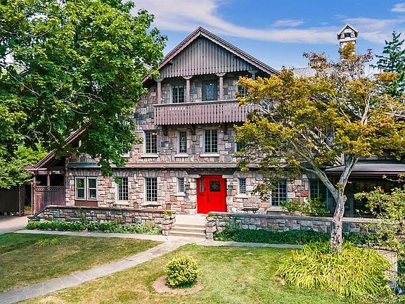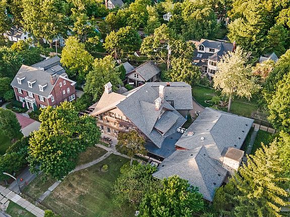 One of Ann Arbor's landmark properties, this grand mansion was constructed in 1917 of hand-hewn quarried granite in the Swiss Chalet style. Past the wide front terrace is a home of gracious proportions. Steel casement windows lend natural light to the rooms. The large living room has a fireplace, oak floors and high ceilings defined by wide moldings. French doors open to a three-season room with the distinctive stone wall along one side. The formal dining room with fireplace, is served by a butler's pantry and large kitchen. On the second floor are 4 bedrooms, including an expansive master suite with fireplace, sleeping porch, and bath. The third floor has the 5th and 6th bedrooms, 2 baths, and a library. The property was acquired by a church in 1946, whereupon a building was added as a parsonage. Later, mid-century architect George Brigham designed a large addition to the main house. More recently, the home became a Bed and Breakfast. The "parsonage was transformed with a sitting and 7 bedroom suites, each with a fireplace and bath. The original carriage house became a private guest cottage. In an extraordinary location close to all Ann Arbor has to offer, this historic gem awaits your imagination.