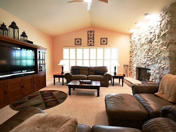 Beautiful. sprawling ranch that features: over 3,300 sqft of finish, large, vaulted living room with fireplace, hardwood floors, kitchen with all appliances staying, eat-in kitchen area and formal dining area, master bedroom suite with walk-in closet, double vanity, and walk-in shower, den/office, four total bedrooms and four bathrooms, lower level living room/game room, two car attached garage and third car pad, fenced in backyard with large patio and 220 for your future hot tub.