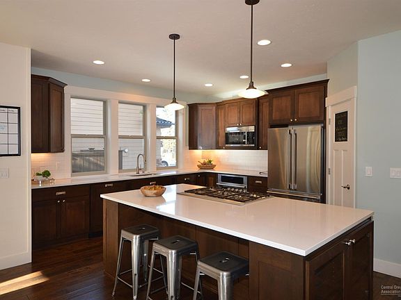 Beautifully maintained in Shevlin Pines, a favored West side neighborhood and near Shevlin Park recreation area & trails. This 3077 sq ft open great room home is a perfect place to gather and entertain. With 4 bedrooms (large 4th bedroom can be used as a media/bonus room), 2.5 baths and a den/office, and well designed outdoor living space, there's room for everyone. Plus loads of storage in the 4 car tandem garage which opens to a mud room. Wood floors, solid surface counter tops thru-out, fireplace with built-ins, large custom kitchen w/ island & upgraded appliances, huge master bedroom suite with two walk-in closets, and big side yard w/gate for storage. Immaculate and like new.
