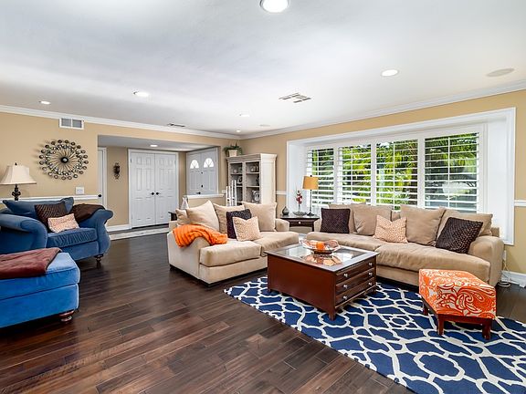 Stunning Porter Ranch home with award-winning schools - Beckford, Nobel and Granada. Great curb appeal with Verdant palm trees and scored concrete driveway and walkway leads to covered front porch. No expense spared - newer dual pane windows, plantation shutters, crown molding, custom iron stair railing, recessed lighting, raised panel doors throughout and more. Dramatic entry which opens to the elegant living room complete with rich hardwood floors, crown and chair rail molding, recessed lighting, smooth ceiling and large picture window affords ample light. Fireplace with custom mantle and adjacent Formal dining room. Truly stunning kitchen completely remodeled with crisp white cabinets, top-of-the-line stainless steel appliances including commercial grade Fisher Pykel range, granite counters, crown molding and center island with elegant chandelier. One bedroom and bathroom conveniently located downstairs off of the large family room with sliding glass doors leading to the yard. Separate office/media room. Indoor laundry. Spacious master suite with remodeled bathroom w/separate vanities, granite counters, maple cabinets and walk in shower. His and her mirrored closets. The additional upstairs bedrooms share the remodel the hall bath. Entertainer's yard is highlighted by a covered patio, large pool, and separate barbecue area. There is an additional half bath outside that services the pool. Close to shopping, transportation and the New Vineyard center (completion 2019).