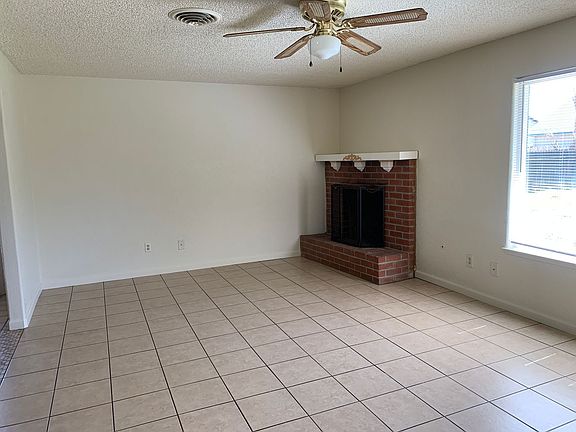 This spacious 3 bed /2 ba house has a huge backyard with a covered patio, oversized two car garage, tile floors throughout most of the house with carpet in bedrooms only. Ceiling fans, central heat/air, fireplace, very spacious kitchen with lots of cabinets, stove, dishwasher and large island with storage. Fresh paint and blinds. This property includes garbage only and will allow a pet upon approval.