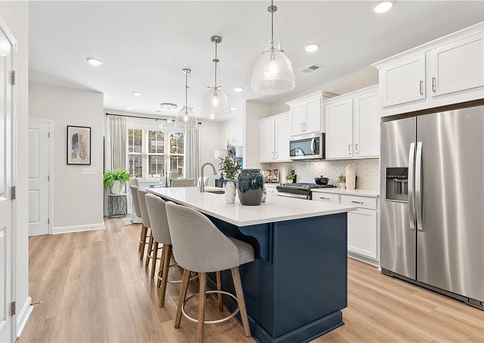 Traton Homes welcomes you to East Park Village in Kennesaw, GA. OUR KAUFMAN B IS READY December. Traton Homes is also offering $2500 anyway you want it along with our preferred lenders who are offering up to $10,000 towards closing costs. The Kaufman features a rear entry 2 car garage with a ground floor bedroom/office and full bath. You will enjoy hardwood stairs from the terrace level that lead up to your main level. Here you will find a spacious open concept kitchen with shaker cabinets, quartz tops, gas cooking and an island that can seat 4 comfortably. The family room opens to a 10'x18' covered deck perfect for entertaining. Hardwood stairs lead you to the upper level where you will find the king-sized Owner’s suite with a large vanity and dual sinks, large shower with bench and spacious custom closet. The secondary bedroom on this floor has a private bath and is separated from the primary suite offering privacy. The laundry is located between these bedrooms for your convenience. East Park Village has a great amenity package including Cabana with fireplace, pool and Dog Park. We are within walking distance of several shops and restaurants and just 1.2 miles from trendy Downtown Kennesaw. East Park Village was named Best Neighborhood in Cobb County for 2024. Come See Why! We are open 7 days a week. All photos are representative, decorated photos are of the model. All applicants must prequalify with our lender regardless of who you choose for your loan. All incentives are tied to preferred lenders only.