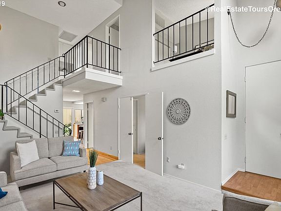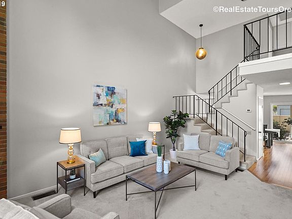 Embrace the low maintenance lifestyle of owning a townhome while enjoying the community garden & beautiful Tryron Creek right out your front door. This 4 bed, 2 bath townhome has a full bedroom and bath on the main floor, large vaulted ceilings in the living room & slider off dining out to your private patio which leads to the detached 2 car garage.