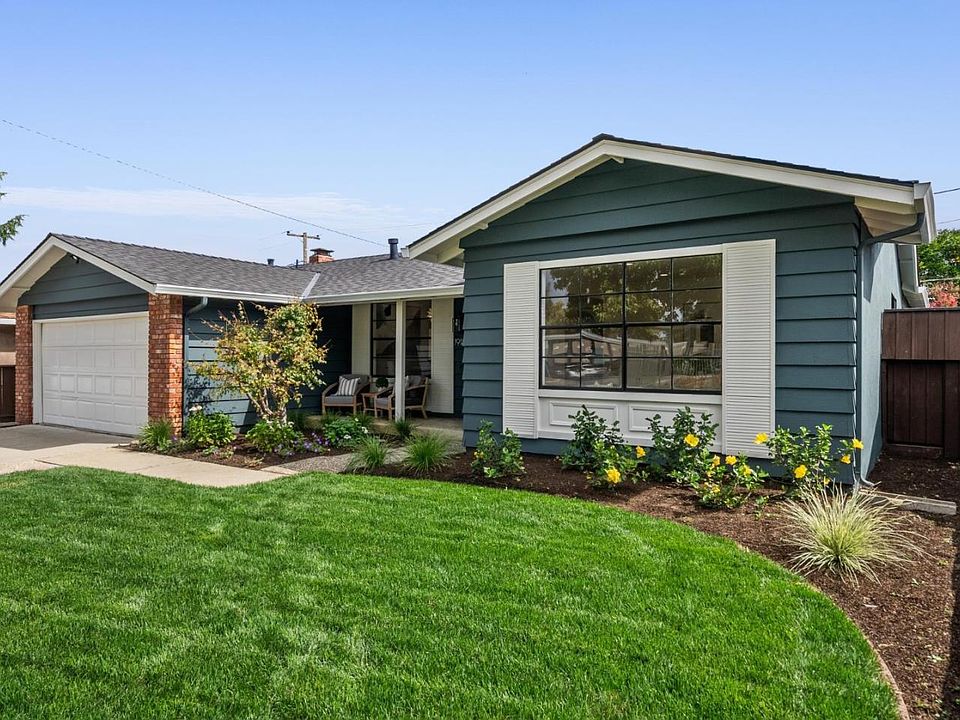 Completely remodeled and updated West San Jose home with excellent curb appeal. This home has an all new kitchen, new hardwood floors, new landscaping, new roof, updated bathrooms and new interior and exterior paint. The single-level floor plan offers approximately 1,585 square feet with four bedrooms and two updated bathrooms; plus a fifth bonus bedroom and a bonus office that is an additional 225 square feet. The house and bonus spaces total ~1,810 square feet. Inside, new engineered hardwood floors unify the interiors, while new light fixtures add modern touches throughout. The single-level floor plan offers a spacious living room with expansive front window. The home has a formal dining room and family room with a fireplace. The open kitchen has been thoughtfully remodeled with white cabinetry, quartz countertops, and a full-height backsplash, complemented by a complete suite of stainless steel GE appliances. Outdoor enjoyment unfolds in the private rear yard, which includes a level lawn, and a variety of fruit trees such as Fuji apple, Granny Smith, fig, and persimmon. Completing the appeal is the homes excellent location just blocks from Westgate Shopping Center, Trader Joes, and Sprouts Farmers Market, with easy access to Highways 85 and 280.