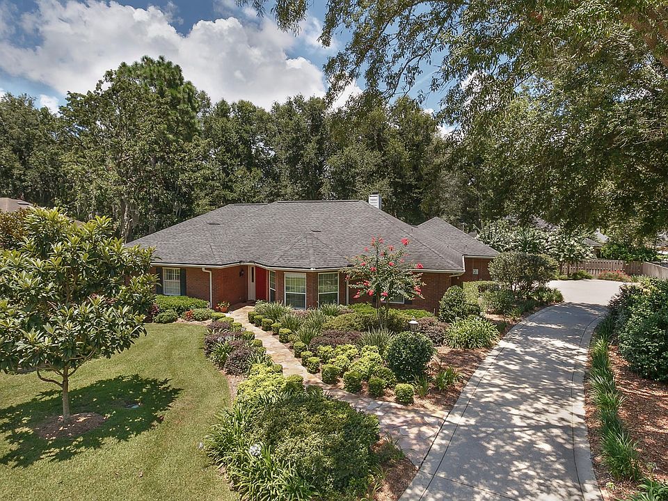 Gorgeous Country Club property with security guard gated access, golf and country club, beautiful oak trees and gardens. This home was custom designed by a local architect as their personal home and is loaded with quality construction and high end features such as all brick construction, two 19 SEER Carrier A/C units, two 80 gallon Hot Water Heaters, all floors hardwood Brazilian cherry, high end stainless appliances, every room custom woodwork in crown molding, custom wood door casings, luxury bathrooms with jacuzzi jet tubs and chandelier lighting, custom travertine tile around pool deck and spa patio, custom landscaping and much more.