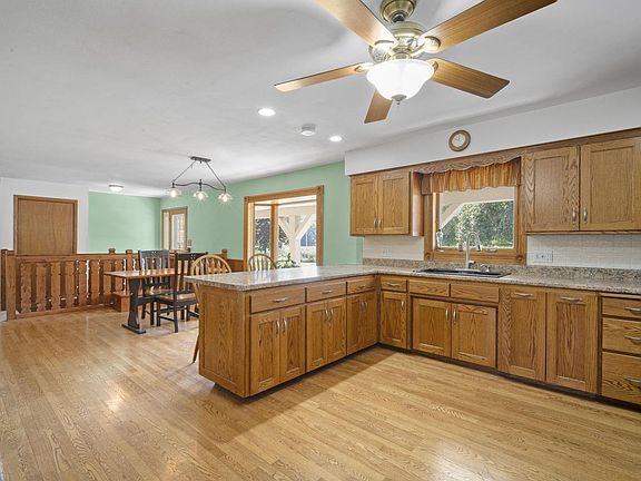 Unique 10.92-acre hobby farm offers endless possibilities . This 3BR, 2BA, 1712 sq ft ranch features a covered Cream City brick front porch, spacious living room with natural fireplace, wood beams, and patio doors to a tree-lined yard. Open kitchen/dining with bay window, HWFs, breakfast bar, tile backsplash, built-in drop zone/office, and ample storage. Main floor laundry, primary suite with walk-in closet. 2.5-car garage with LL access . Heated 42x40 shop with concrete floor, water, car lift, and 200-amp electric. 30x40 barn includes 3 stalls, tack room, feed room, hay storage, cement aisle. Located close to to West Bend, Kewaskum, trails, and Kettle Moraine.