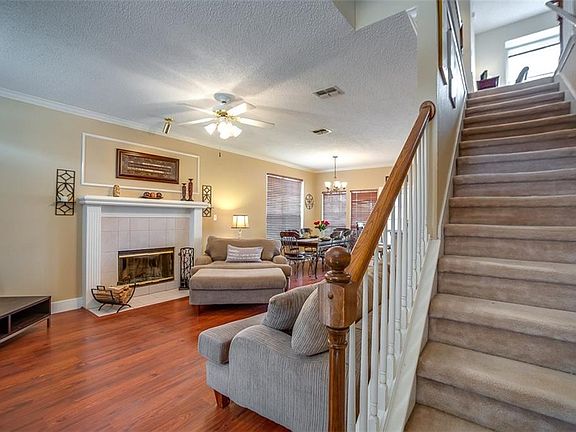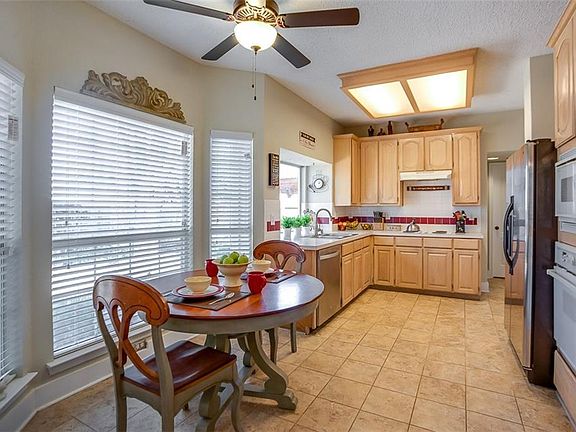 Walk to Lake Grapevine! New Roof prior to closing! Enjoy large living area with lam. wood flooring, fireplace, dining room with view to patio & backyard. Kitchen features wood cabinetry, white appliances, pantry, large window over sink & the refrigerator stays! Half bath & utility room also on first floor. Upstairs enjoy a second living area & window seat. Spacious Master Suite offers dual sink granite vanity, separate tub & shower, large walk-in closet. Two other bedrooms & a full bath are also upstairs. Large backyard with mature trees & shed stays. Walk to Dove Elem School,Dove Park's water park & playground, close to Grapevine Lake Trails,boat launch, winery, minutes from downtown Grapevine,shopping,dining.