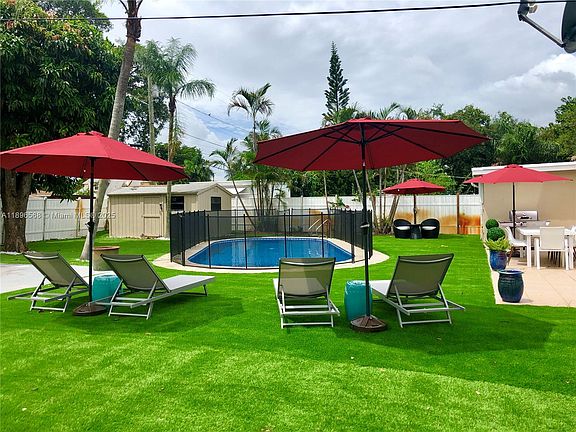Beautiful inground poolLarge fenced backyardSpacious patioTropical landscapingOpen-concept kitchen